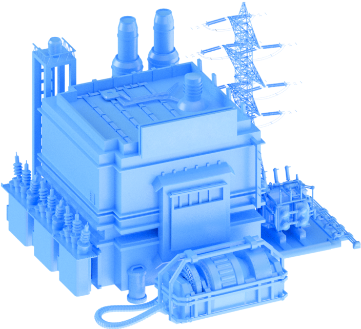 Electricity is generated by thermal, hydroelectric, and solar power plants, as well as by wind turbines. It is then delivered through power lines to substations that feed organizations, factories, and transport. All substations are managed by a dispatch control center, and smart meters send readings directly to the energy company.