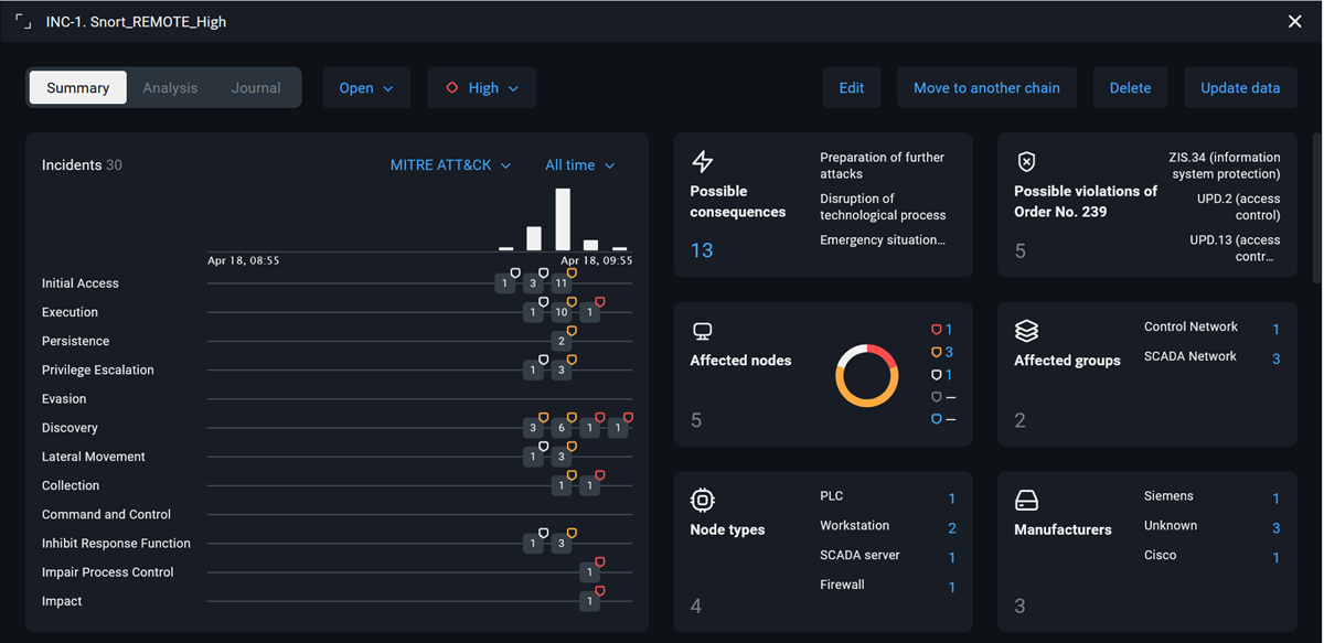 It is not enough to just copy the text from the security tools: you must thoroughly analyze the attackers' actions and describe the essence of the attack. This will show the jury that you have correctly understood the attackers' actions. Messages from the security tools can be attached to the step in the form of screenshots.
