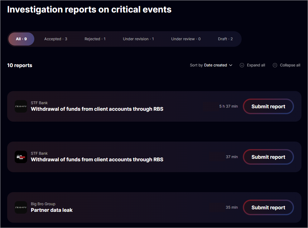 6. Attach screenshots confirming the attackers' actions.These can be screenshots of security tool UIs. Screenshots are mandatory for the final step of a critical event triggering: without these, the report will be returned for revision.