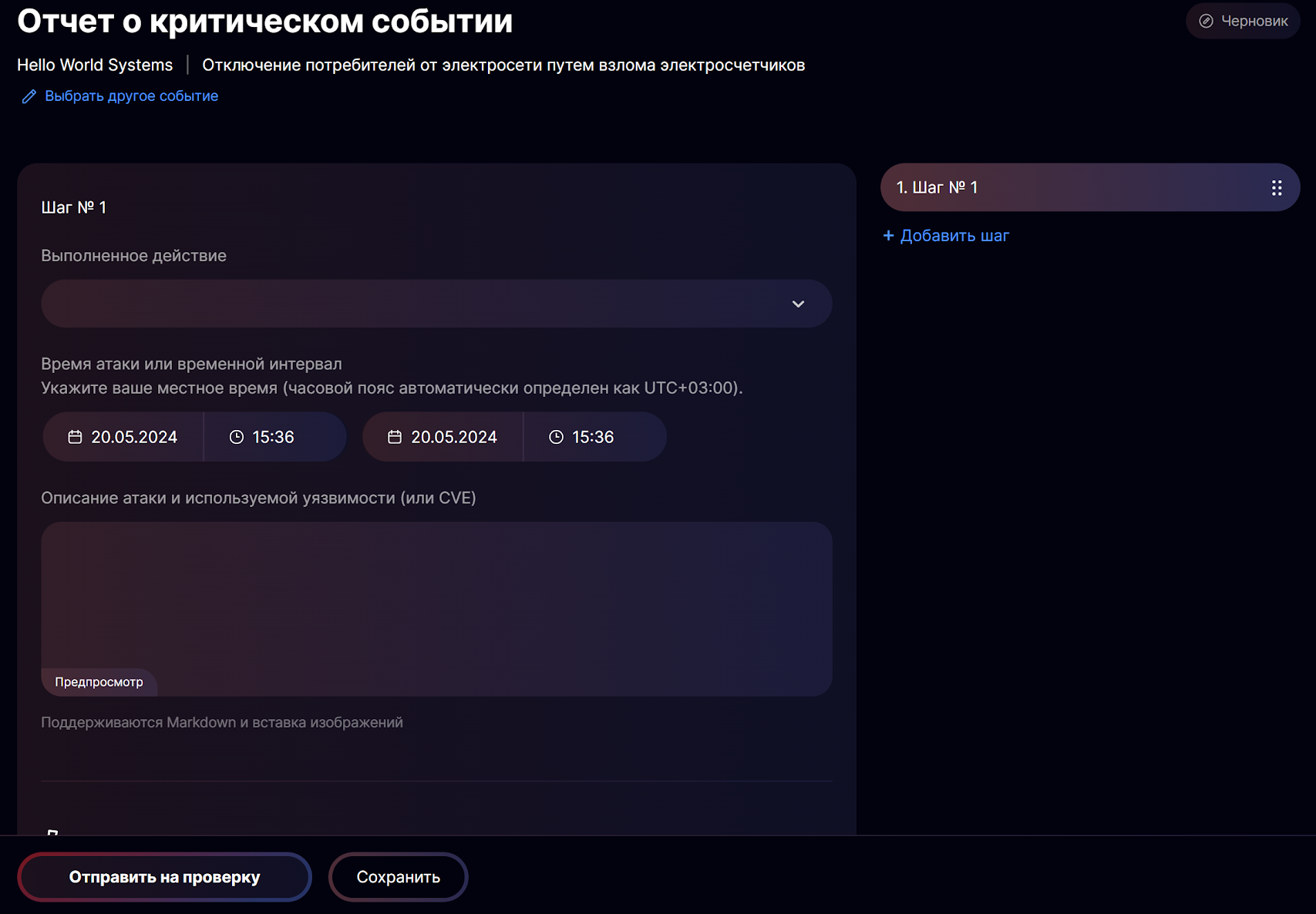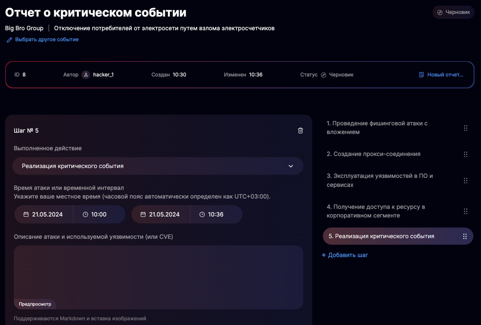 Реализация критического события