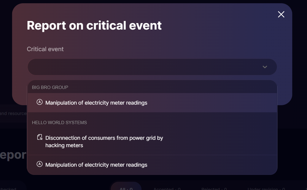 - From the drop-down list Critical event, select the critical event that's been triggered.